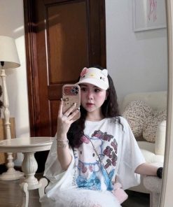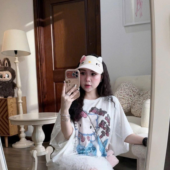 Thấy cái mũ này phải rinh về liền phục vụ ce. Mix vs mấy cái áo phông hình kute hợp thật sự. Vừa che nắg vừa đáng iuuuuu 🤍🫶🏻🤍