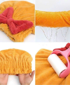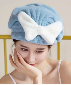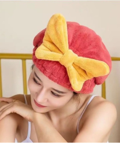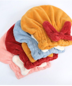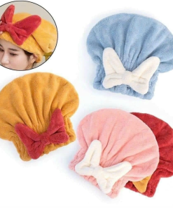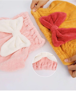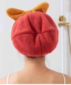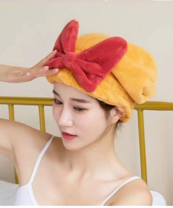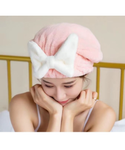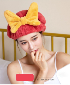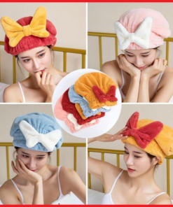 Mũ / Nón trùm đầu ủ tóc vải nhung Đính Nơ mềm mịn siêu thấm hút siêu xinh cho nữ