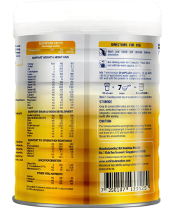 - Thành phần: Sữa bột nguyên kem, bột sữa (bột whey khử khoáng, sữa bột nguyên kem, dầu thực vật (dầu hạt cải, dầu bắp, dầu dừa, dầu hướng dương), sữa bột tách béo, lactose, chất khoáng (calci carbonat, calci hydro phosphat, magnesi clorid, kali clorid, dikali phosphat, natri citrat, natri clorid, kali iodid, natri selenit), đạm whey cô đặc, natri L-ascorbat, retinyl acetat, cholecalciferol, DL-alpha- tocopheryl acetat, phylloquinon, thiamin hydroclorid, riboflavin, pyridoxin hydroclorid, cyanocobalamin, niacinamid, calci D-pantothenat, acid folic, D-biotin, inositol, taurin), maltodextrin, đường sucrose, sữa non/ colostrum (5 %), chất xơ thực phẩm (FOS/ Inulin), Medium chain triglycerides (MCT), acid docosahexaenoic (DHA) từ tảo, vitamin và khoáng chất (magnesi oxyd, đồng sulfat, sắt pyrophosphat, acid pantothenic, kẽm oxyd, mangan sulfat, crom clorid, natri molybdat, thiamin mononitrat, tricalci phosphat), cholin bitartrat, hương liệu tổng hợp dùng cho thực phẩm, 2'-Fucosyllactose (2'-FL), lutein, probiotic (Bifidobacterium lactis)