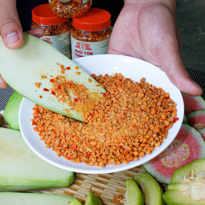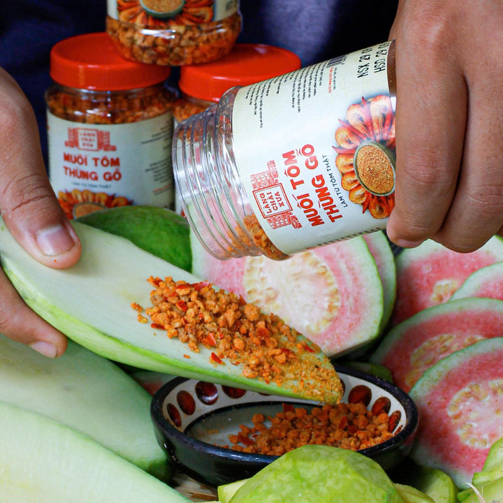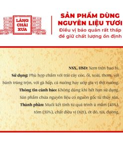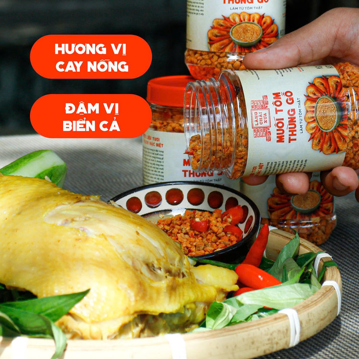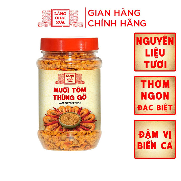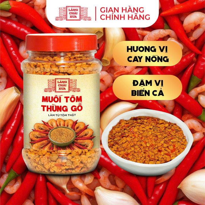 – Muối tôm thùng gỗ Làng Chài Xưa rất thơm ngon, muối kết tinh từ thùng lều gỗ truyền thống, trải qua quá trình ủ chượp nước mắm tỉ mỉ. Những hạt muối được rang sấy cùng tôm khô và gia vị chọn lọc, tạo nên một loại muối chấm đậm vị biển cả, khác biệt hẳn với các loại muối tôm thông thường.