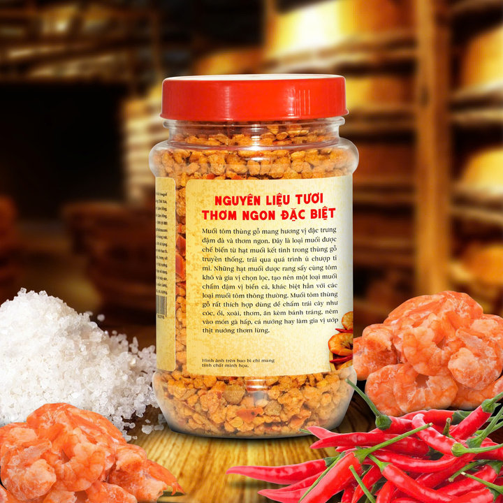 – MUỐI TÔM THÙNG GỖ – LÀM TỪ TÔM THẬT – HẠT MUỐI KẾT TINH TRONG THÙNG GỖ Ủ NƯỚC MẮM RANG SẤY CÙNG TÔM KHÔ VÀ GIA VỊ CHỌN LỌC