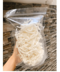 🥥Dừa non sau khi sơ chế được sấy sơ qua công nghệ cao nhầm giữ nguyên hương vị nhưng sấy ít đường, hoà nguyện cùng lá dứa và sữa tạo ra sợi dừa non sấy giòn nhưng vẫn mềm mại khi ăn! Không bỏ màu nên bên e chỉ mot loại trắng duy nhất. Tết nay mình thử 1 loại khác truyền thống 1 chút nhưng vẫn giữ được nét đẹp của Mứt Tết ạ