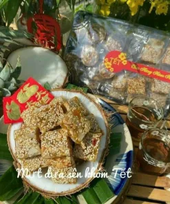 🌼 Là kết hợp giữa sợi dừa, tác sợi, khóm miếng, gừng và mè trong đó e cho rất nhiều dừa để tạo độ béo luôn, khách sẽ cực ki thích khi ăn vì không quá ngọt .
