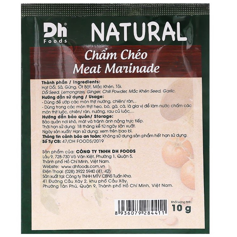 - Tên sản phẩm: Natural Gia Vị Ướp Thịt Chẩm Chéo 10g – Dh Foods