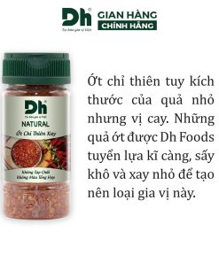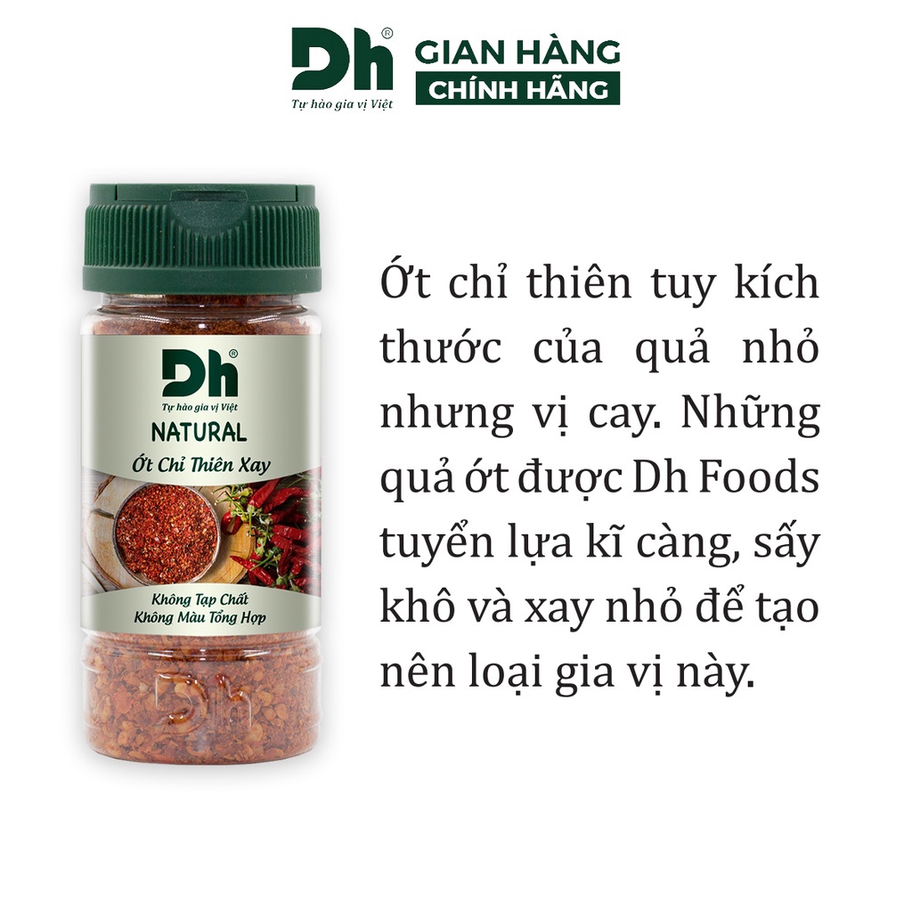 - Ớt chỉ thiên tuy kích thước của quả nhỏ nhưng vị cay. Những quả ớt được Dh Foods tuyển lựa kỹ càng, sấy khô và xay nhỏ để tạo nên loại gia vị này.