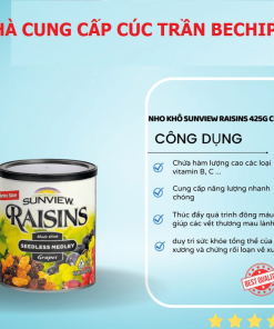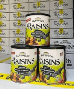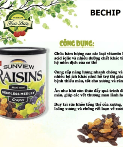 - Nho khô Sunview là hỗn hợp nho không hạt, từ nho đen, nho vàng, nho đỏ. Nho được sản xuất bằng quy trình sấy hiện đại nên giữ được chất dinh dưỡng cao, với quy trình sản xuất và chế biến đảm bảo vệ sinh an toàn thực phẩm, không chứa thêm các phụ gia hay chất bảo quản độc hại ảnh hưởng đến sức khỏe người dùng