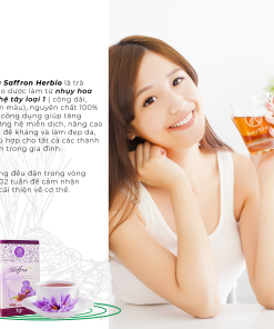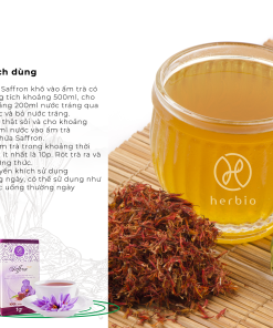 - Trà Saffron Herbio là trà thảo dược làm từ nhụy hoa nghệ tây loại 1 (cọng dài, sậm màu), nguyên chất 100% với công dụng giúp tăng cường hệ miễn dịch, nâng cao sức đề kháng và làm đẹp da, phù hợp cho tất cả các thành viên trong gia đình.