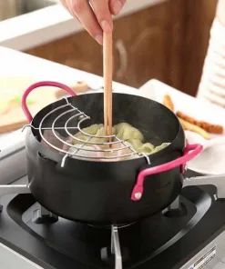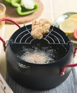 Nồi với lớp phủ chống dính thức ăn, dễ vệ sinh. Tiện dùng chiên Tempura, các món chiên bột… Kèm lưới để thức ăn làm ráo dầu tiện dụng.