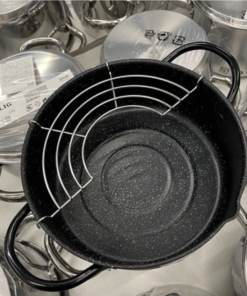 – Bộ sản phẩm gồm: Nồi + vỉ ráo dầu