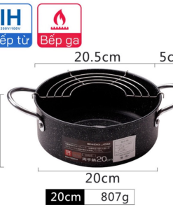 – Tên sản phẩm: NỒI CHIÊN LỌC DẦU CHỐNG DÍNH VÂN ĐÁ NHẬT BẢN 20CM TẶNG KÈM VỈ RÁO DẦU