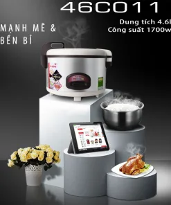 - Nồi cơm điện Sato 46C017 có dung tích 4.6L, thiết kế nhỏ gọn xinh xắn, nấu được 2kg gạo.