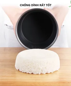 - Lòng nồi chắc chắn, có tráng chống dính giúp bạn dễ vệ sinh sau khi nấu.
