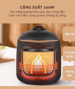 – Nồi Cơm Mini thiết kế 5 lớp, phủ lớp chống dính đá Ceramic: không sợ tróc, an toàn cho sức khỏe, thân thiện với môi trường