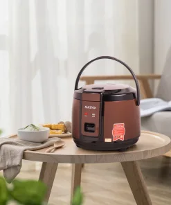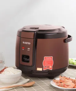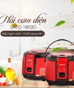 - Nồi cơm điện Sato 18F051 màu đỏ + đen và 18F052 màu nâu với dung tích 1.8L, thích hợp cho 4 – 6 người ăn.