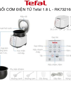 ✔️ Nồi cơm điện tử Tefal 1.8 lít RK732168 thương hiệu Pháp có nhiều chế độ nấu sẵn giúp bạn chế biến món ăn đa dạng, tiện lợi, tiết kiệm thời gian.