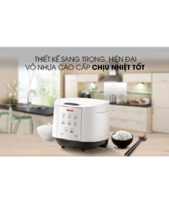 1. Nồi cơm điện tử Tefal 1.8 lít RK732168 thiết kế màu trắng trang nhã, vỏ nồi bằng chất liệu nhựa cao cấp, chịu nhiệt tốt, dễ dàng vệ sinh khi dính bụi bẩn