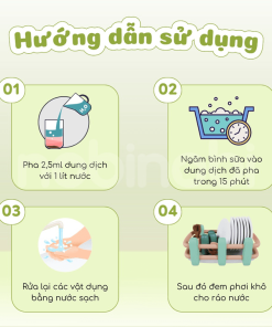 Khử trùng hiệu quả: Giúp làm sạch và khử trùng bình sữa, núm vú giả (bằng cao su silicone hoặc cao su isoprene), và bộ đồ ăn cho trẻ em.