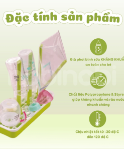 5. Hướng dẫn sử dụng: Sau khi rửa sạch các dụng cụ ăn uống như bình sữa, bát, cốc… thì úp ngược vào các thanh dựng và điều chỉnh chiều hướng thanh dựng tùy theo ý muốn.