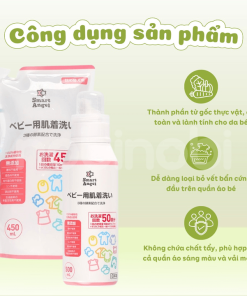 Nước giặt quần áo trẻ sơ sinh SmartAngel là lựa chọn lý tưởng cho mẹ trong việc chăm sóc quần áo cho bé. Với công thức làm sạch từ gốc thực vật và hoàn toàn an toàn cho làn da nhạy cảm của trẻ, sản phẩm giúp loại bỏ hiệu quả các vết bẩn cứng đầu mà vẫn dịu nhẹ với da bé.