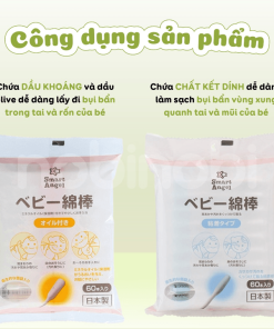 Tăm Bông SmartAngel Thấm Dầu & Kết Dính giúp cho quá trình vệ sinh tai, mũi và rốn bé một cách thuận tiện và dễ dàng. Từng que với đầu bông thấm dầu và chất kết dính mang 2 công dụng, vừa lấy đi bụi bẩn, vừa dưỡng ẩm ngăn tổn thương da.
