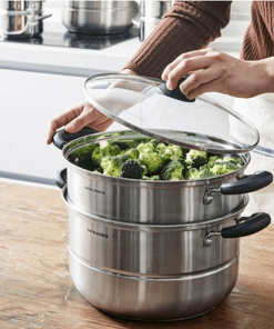 - Sản phẩm gồm phần nồi và xửng hấp, là lựa chọn thông minh của người nội trợ, giúp công việc nấu nướng dễ dàng hơn.