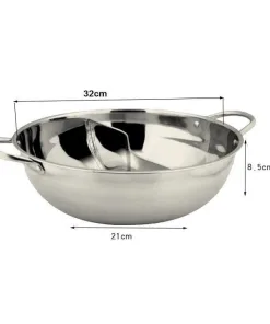 Tên sản phẩm: NỒI LẨU 2 NGĂN INOX 304 SIZE 32CM – SILVER