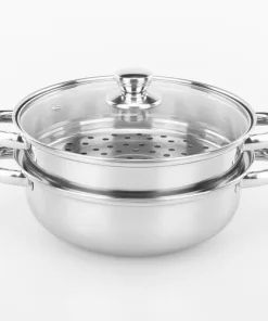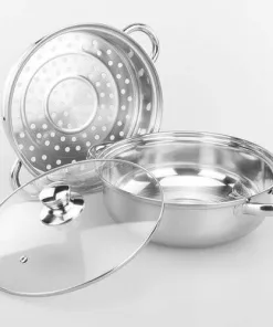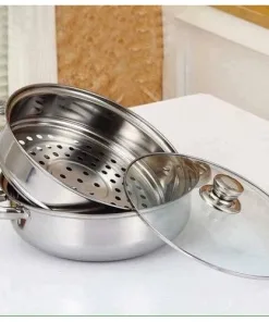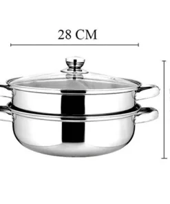 Nồi lẩu, có vỉ hấp inox – Nồi hấp inox cao cấp 2 tầng đường kính 28cm