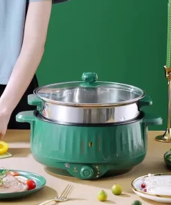 📝 Đặc điểm nổi bật Nồi lẩu mini đa năng 28cm chiên, xào,rán, luộc có chống dính Teflon cao cấp kèm xửng hấp inox – Nồi lẩu điện đa năng