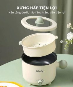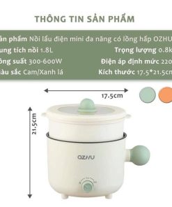 Nồi Lẩu Điện Mini OZHU 18cm 2 Nấc Nhiệt Kèm Giá Hấp Có Tay Cầm Tiện Dụng, Nồi Lẩu Mini Đa Năng 2 Tầng Cao Cấp Nồi Điện