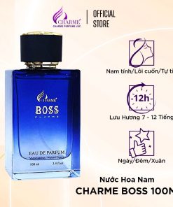 – Nước hoa nam cao cấp Charme Boss giúp phái mạnh trở nên lôi cuốn khiến các cô gái bị quyến rũ ngay từ lần đầu gặp mặt. Nước hoa thơm lâu gây ấn tượng nổi bật giữa đám đông khiến cho người khác phái mê đắm.