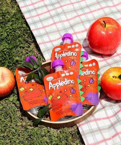 - Nước ép trái cây Appledino là sự kết hợp giữa táo hữu cơ, mận khô và chanh dây, mang lại hương vị ngọt ngào các bé yêu thích.
