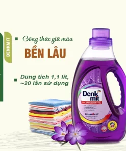 - Nước giặt quần áo Denkmit giúp quần áo được giặt nhanh chóng với công thức chăm sóc Color & Care cải tiến cho phép màu sắc tỏa sáng lâu hơn và nhẹ nhàng hơn trên các sợi dệt. Chất tẩy trung tính an toàn cho các sợi tổng hợp và loại vải nhẹ nhàng khác. Công thức đặc biệt không phá hủy chất xơ của vải và tăng cường màu sắc. Giữ được độ sáng và sự tươi tắn của các màu sắc trên quần áo và giúp quần áo sẽ vẫn như mới trong một thời gian dài. Nước giặt Denkmit thích hợp cho cả giặt tay và giặt máy. Nước giặt Denkmit không phù hợp với chất liệu len và lụa.