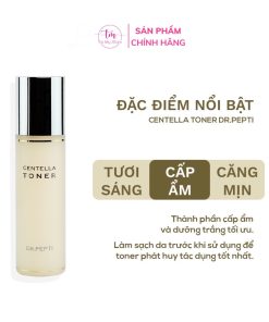 Nước hoa hồng Dr.Pepti+ Centella Toner 180ml nhẹ nhàng lấy đi các tế bào chết thúc đẩy quá trình tái tạo da đồng thời cho bạn làn da căng mịn trắng sáng.