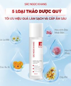 Để cứu nguy làn da khỏi tình trạng khát ẩm, khôi phục vẻ mềm mại, sáng khỏe thì Nước Hoa Hồng Thảo Dược Sắc Ngọc Khang là người bạn đồng hành không thể thiếu. Sản phẩm được kết tinh từ 5 loại thảo dược thiên nhiên quý báu, an toàn cho mọi loại da: