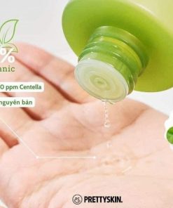 – Bước 2: Sử dụng toner Centella Prettyskin. Thấm 1 lượng toner vào bông tẩy trang và nhẹ nhàng lau khắp mặt.