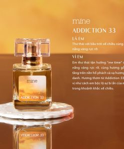 – Em thư thái tận hưởng “me time” dưới nắng vàng rực rỡ, cùng hương gỗ đa tầng trên nền hổ phách và xạ hương trứ danh. Hương thơm từ Addiction 33 thú vị như cách em bộc lộ sự bí ẩn của mình trong khoảnh khắc xế chiều