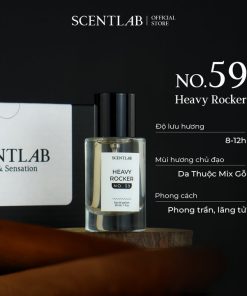 HEAVY ROCKER NO. 59 là mùi hương dành cho phái mạnh, là đại diện cho một chàng trai đa tình, lãng tử, vừa phong trần vừa khiêu khích, phóng khoáng. Mở đầu là hương thơm Thảo Quả nồng nàn, tạo ấn tượng ngay lập tức. Ở tầng hương tiếp theo là sự có mặt của Da thuộc và Hoa nhài Sambac kết nối sức hấp dẫn và cuốn hút của chàng đến với người đối diện. Cuối cùng, Bộ ba Rêu Trắng, Hổ Phách, Hoắc Hương hòa nguyện giúp HEAVY ROCKER NO. 59 tăng phần mạnh mẽ và sở hữu sức quyến rũ mãnh liệt khó có thể ngó lơ.