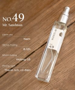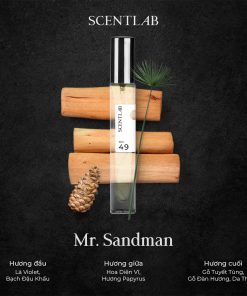 MR SANDMAN NO. 49 là mùi hương “nịn mũi” dành cho các chàng trai với đặc trưng hương thơm vintage cổ điển, thanh lịch và vô cùng tinh tế. SANDMAN mang không khí xưởng gỗ đầy ắp bụi gỗ được tạo bởi hương thơm của Lá Violet, Bạch Đậu Khấu, Gỗ Tuyết Tùng, Gỗ Đàn Hương pha trộn với sự nhẹ nhàng tao nhã của Hoa Diên Vĩ, Hương Papyrus. Mọi thứ được sắp xếp một cách ngăn nắp và ẩn chứa cảm xúc, tạo thành nét ấn tượng, phong cách thanh lịch, tính tế và cũng dạt dào tình cảm cho các chàng trai SCENTLAB.
