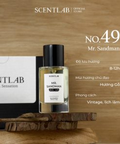 MR SANDMAN NO. 49 là mùi hương “nịn mũi” dành cho các chàng trai với đặc trưng hương thơm vintage cổ điển, thanh lịch và vô cùng tinh tế. SANDMAN mang không khí xưởng gỗ đầy ắp bụi gỗ được tạo bởi hương thơm của Lá Violet, Bạch Đậu Khấu, Gỗ Tuyết Tùng, Gỗ Đàn Hương pha trộn với sự nhẹ nhàng tao nhã của Hoa Diên Vĩ, Hương Papyrus. Mọi thứ được sắp xếp một cách ngăn nắp và ẩn chứa cảm xúc, tạo thành nét ấn tượng, phong cách thanh lịch, tính tế và cũng dạt dào tình cảm cho các chàng trai SCENTLAB.