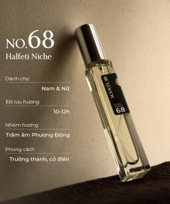 Vậy nên nước hoa được xem là một món trang sức vô hình giúp thu hút và để lại dấu ấn khó phai mờ. Mùi hương còn mang lại cơ hội để người mang hương thể hiện được cá tính riêng của bản thân. HALFETI NICHE NO. 68 là dòng nước hoa dành cho nam và nữ, có hương thơm cổ điển, ấn tượng khó quên, mang đến sự trưởng thành, sâu sắc trong nội tâm.