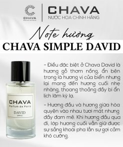 - Chava David là hương gỗ thơm nồng, ẩn bên trong là hương vị của biển nhưng lại mang đến hương cuối nhẹ nhàng thoang thoảng đầy bí ẩn, lịch lãm kỳ lạ.