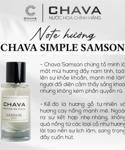 - Chava Samson chứng tỏ mình là một mùi hương đầy nam tính, toát lên sự khỏe khoắn mạnh mẽ làm người đối diện thấy sảng khoái nhưng không kém phần quyến rũ.