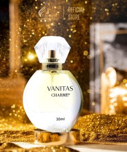 – Mẫu chai Nước hoa nữ thơm lâu Charme Vanitas được thiết kế trong mẫu chai sang trọng với một tông màu vàng và được đính thêm một đoạn kim loại màu vàng kim thể hiện sự sang trọng và hấp dẫn. Nước hoa thơm lâu Charme Vanitas là một mẫu nước hoa thể hiện được sự tươi mát tốt nhất trong các sản phẩn của nước hoa Charme. Hương hoa trắng mạnh mẽ, nhưng không quá nồng và được hương gỗ trung hòa bớt.