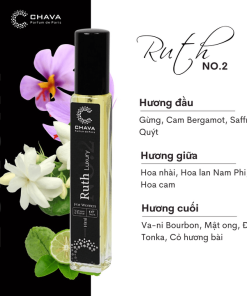 - Hương cuối: Cuối cùng, sự ấm áp của vani và hổ phách như một chiếc chăn mềm mại, bao bọc và an ủi, để lại dấu ấn khó quên trên da. Sự kết hợp này tạo ra một cảm giác dễ chịu và quyến rũ, khiến Ruth No.2 trở thành một lựa chọn hoàn hảo cho những buổi tiệc tối hay những dịp đặc biệt.
