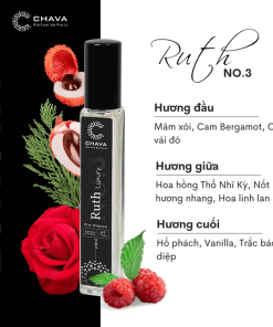 - Ruth No.3 mang đến một trải nghiệm đầy quyến rũ, bí ẩn và thanh khiết. Với tên gọi lấy cảm hứng từ sức mạnh nữ tính, chai nước hoa này tỏa ánh sáng như một viên ngọc quý, thể hiện sự thanh lịch và sang trọng. Năng luợng thuần khiết khiến đối phương muốn được che chở và bảo vệ cho cô gái thuần kiết này.