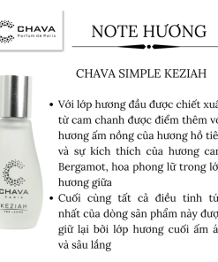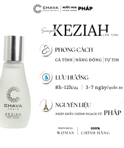 - Nước hoa nữ Chava Keziah được sản xuất từ nguồn nguyên liệu thiên nhiên (hương hoa, cỏ phương Đông) được nhập khẩu chính ngạch từ Paris.