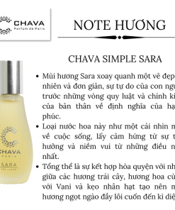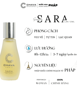 - Nước hoa nữ Chava Sara được sản xuất từ nguồn nguyên liệu thiên nhiên (hương hoa cỏ, trái cây) được nhập khẩu chính ngạch từ Paris.