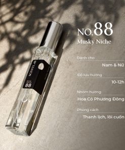 Vậy nên nước hoa được xem là một phương thức biểu đạt tâm tư tình cảm của người sử dụng hay tạo nên nét chấm phá riêng biệt cho mỗi cá nhân. MUSKY NICHE NO. 88 dành cho nam và nữ có hương thơm nữ tính, tinh tế, cuốn hút, thể hiện cá tính hiện đại đầy tự tin của phái nữ. Sự mở đầu được bao bọc trong hơi thở đầy mê hoặc của Hoa Hồng kết hợp Gỗ Tuyết Tùng và Đậu Tonka ở hương giữa đã đẩy hương thơm lên một tầm cao đầy cảm xúc. Kết thúc bằng Hoa Nghệ Tây và Hổ Phách mang đến sự ấm áp và quý phái gợi lên sự mạnh mẽ nhưng ngọt ngào bí ẩn đầy mị lực.