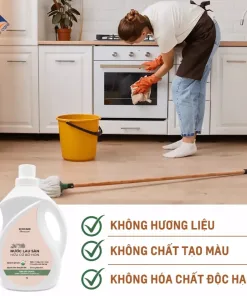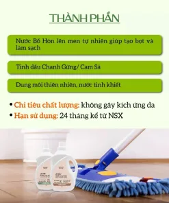 Hướng dẫn sử dụng: Hòa 1 nắp nước lau sàn hữu cơ bồ hòn vào 1/2 xô nước ( loại 5 lít), nhúng cây lau sàn vào dung dịch mới pha và lau sạch khu vực cần lau.