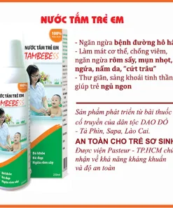 - Nước tắm trẻ em Tambebe được nghiên cứu từ bài thuốc cổ truyền của người Dao Đỏ. Thành phần chiết xuất từ các loại thảo dược quý, sử dụng cho trẻ nhũ nhi, trẻ nhỏ, người lớn. Chỉ cần pha với nước nóng để ngâm tắm hằng ngày, phòng ngừa bệnh ngoài da, hương thơm thảo dược thư giãn sảng khoái tinh thần. Tắm gội trẻ em Tambebess được nghiên cứu và kiểm nghiệm bởi các GS – TS trường đại học Dược Hà Nội.